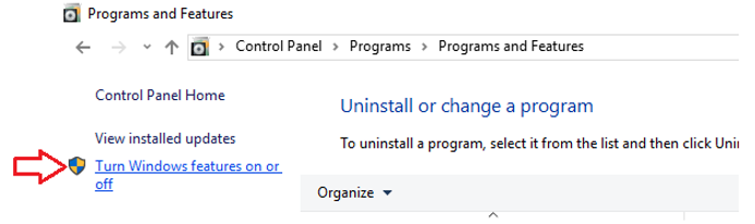 Turn Windows features on or off