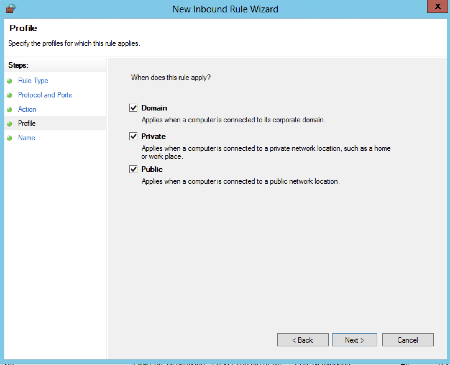 ภาพที่ 5 ตั้งค่า Firewall เลือกทั้ง Public, Private, Domain