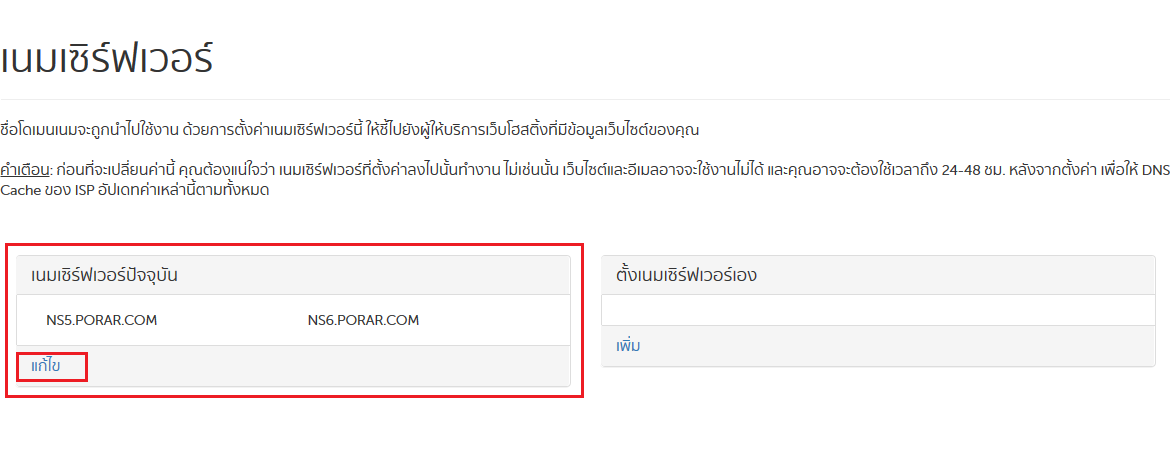 หมายเหตุ การเปลี่ยนเนมเซิร์ฟเวอร์จะใช้เวลอัพเดท 1-2 วันค่ะ