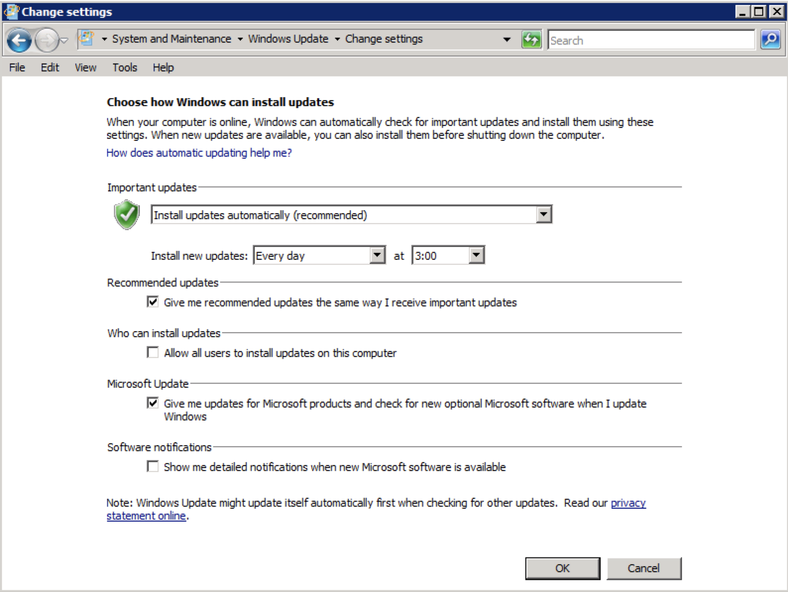 ภาพที่ 1 ตั้งให้ windows update ตัวเองอัตโนมัติ ทุกๆ เวลาตี 3