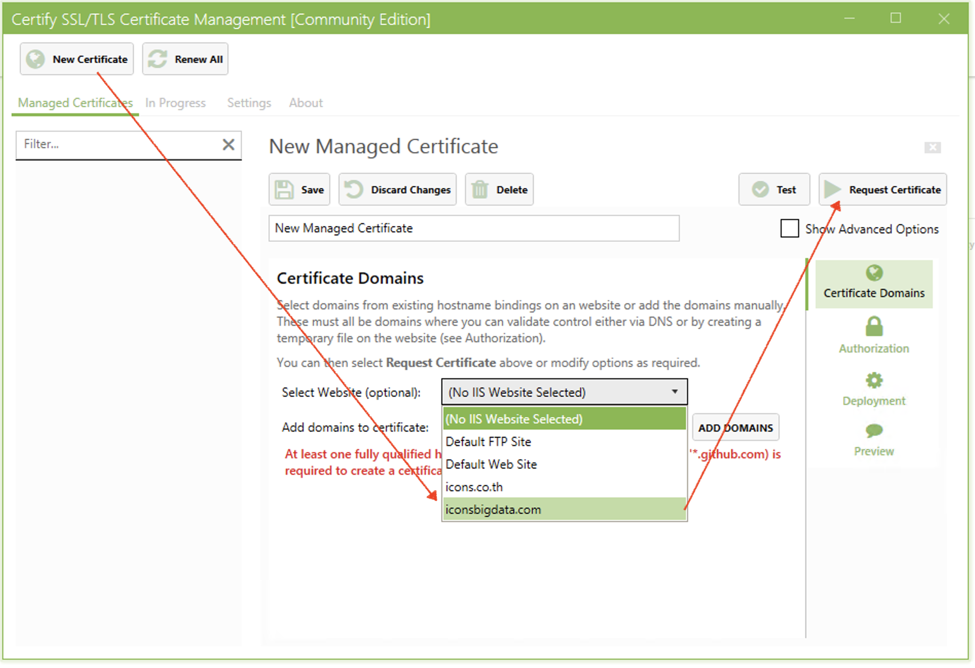 แล้วคลิกปุ่ม Request Certificate