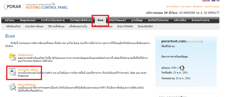 2. เข้าไปที่เมนู อีเมล > ระบบจัดการอีเมล