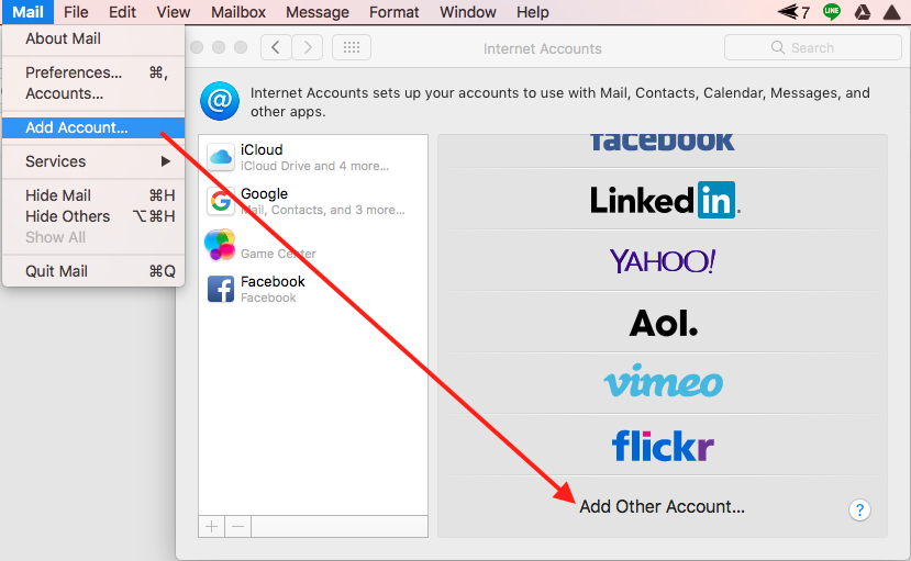 1. เปิดโปรแกรม Mail ใน MacOS ขึ้นมา เลือกที่เมนู Add Account > Add Other Account